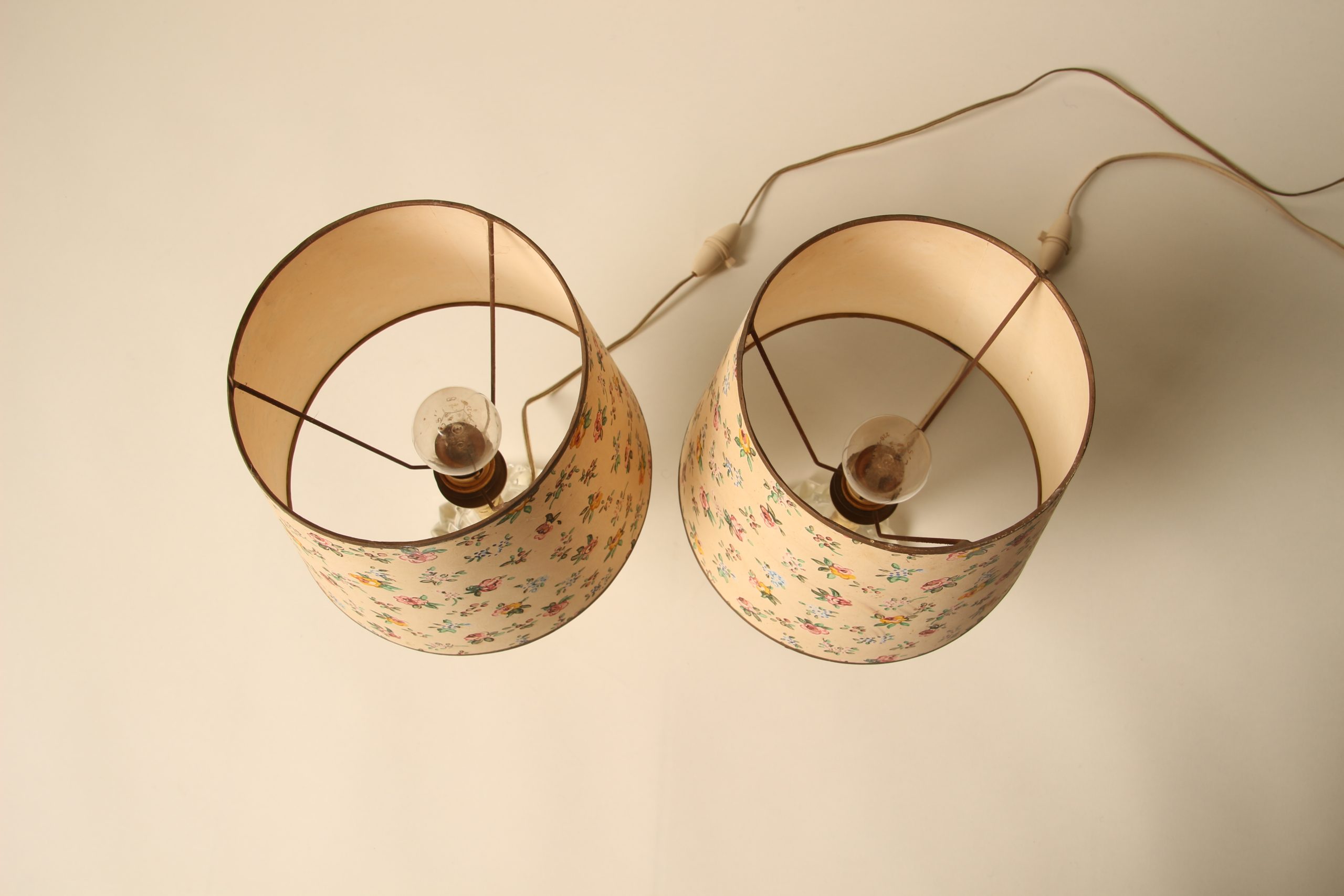 Paire de lampes à abat-jour fleuris peints à la main