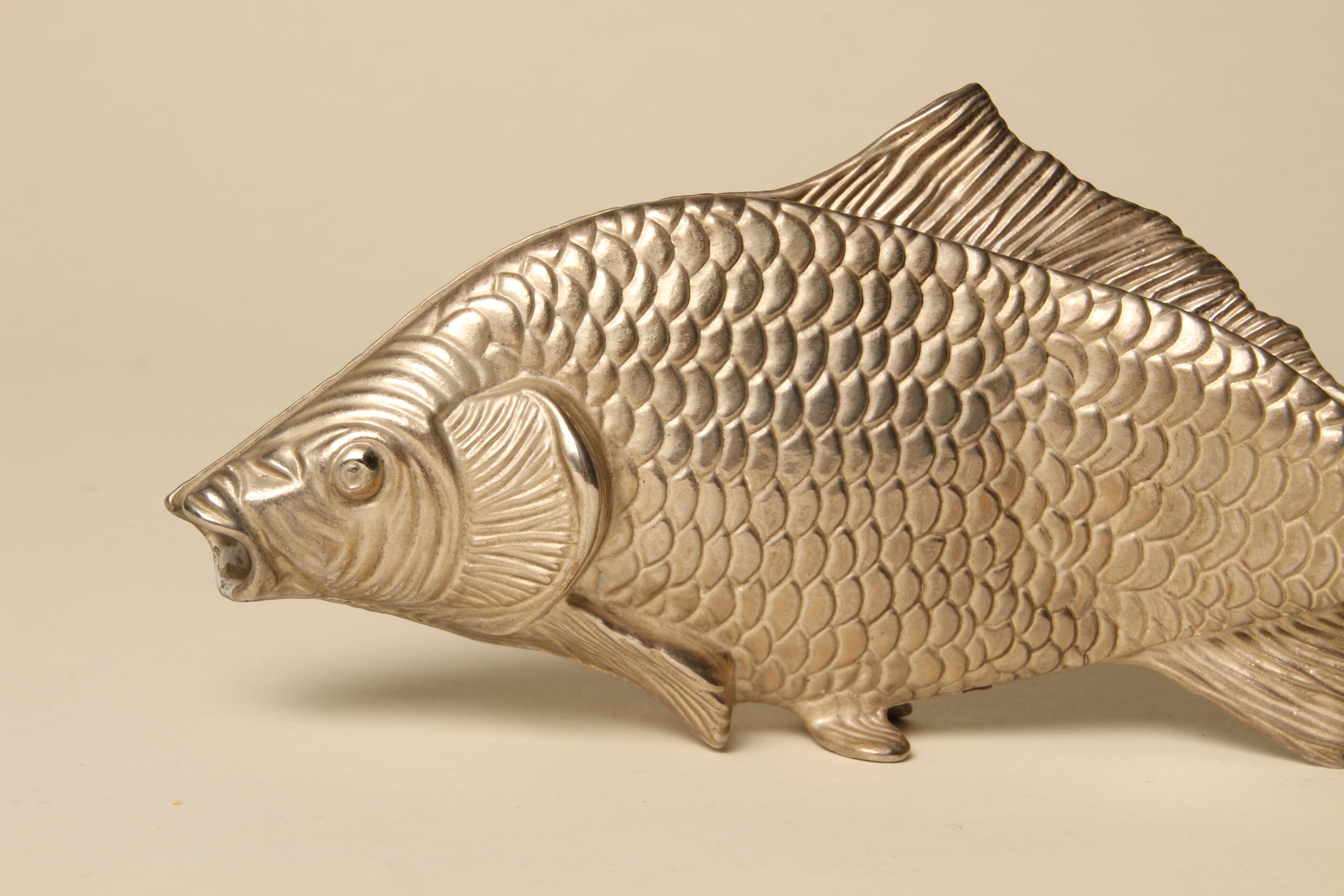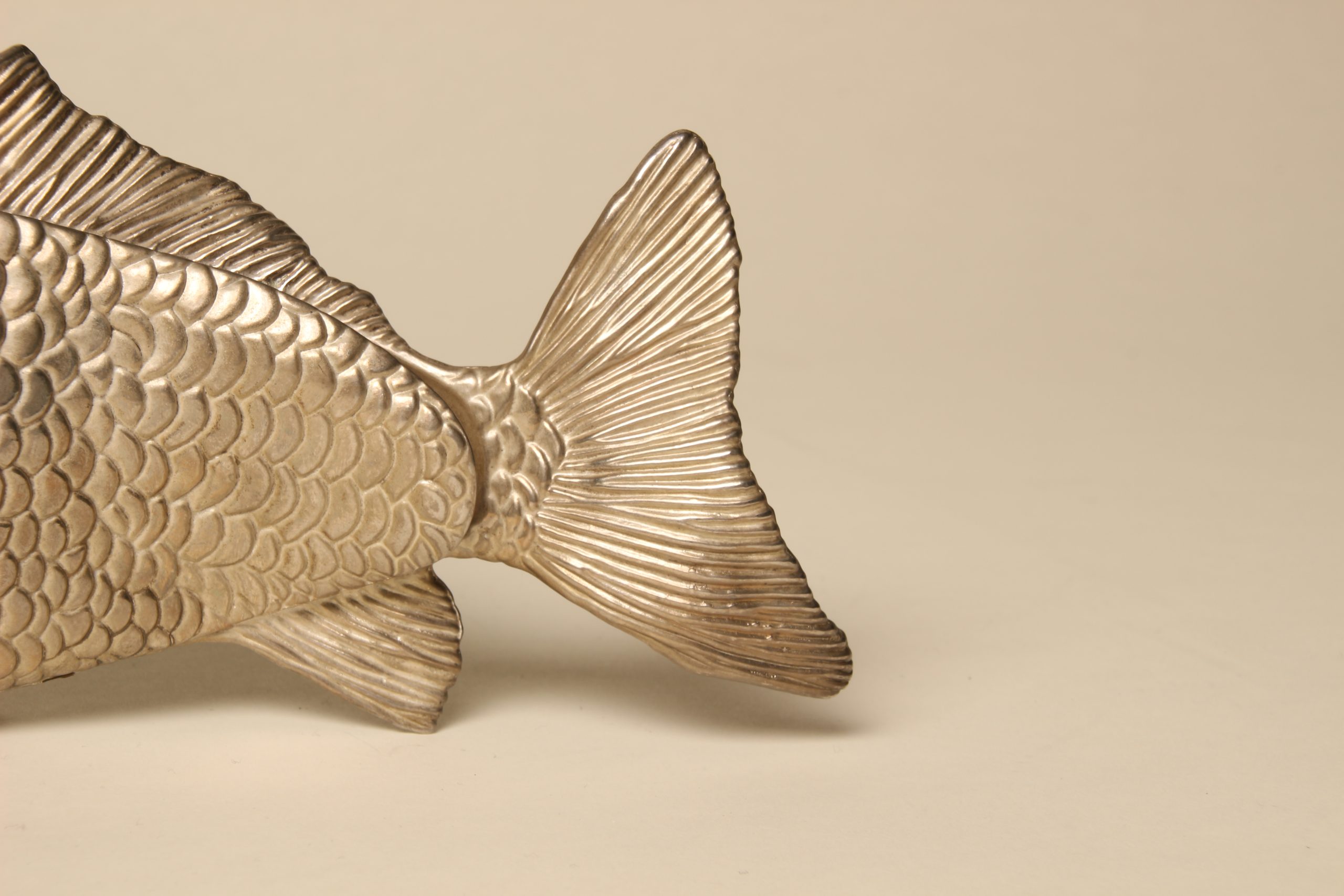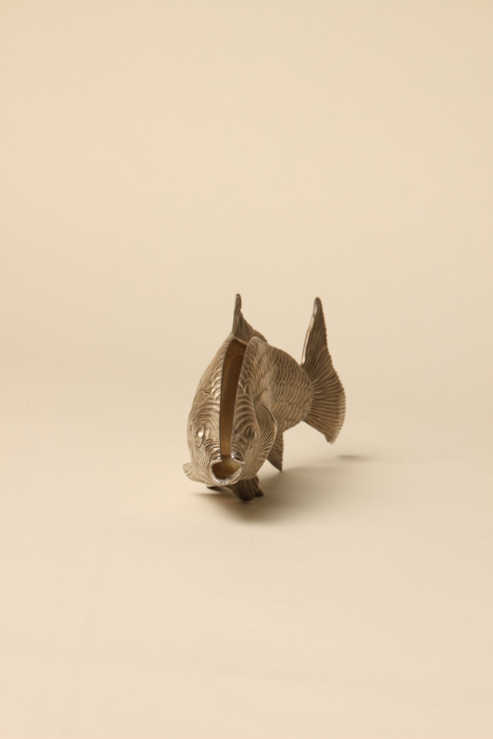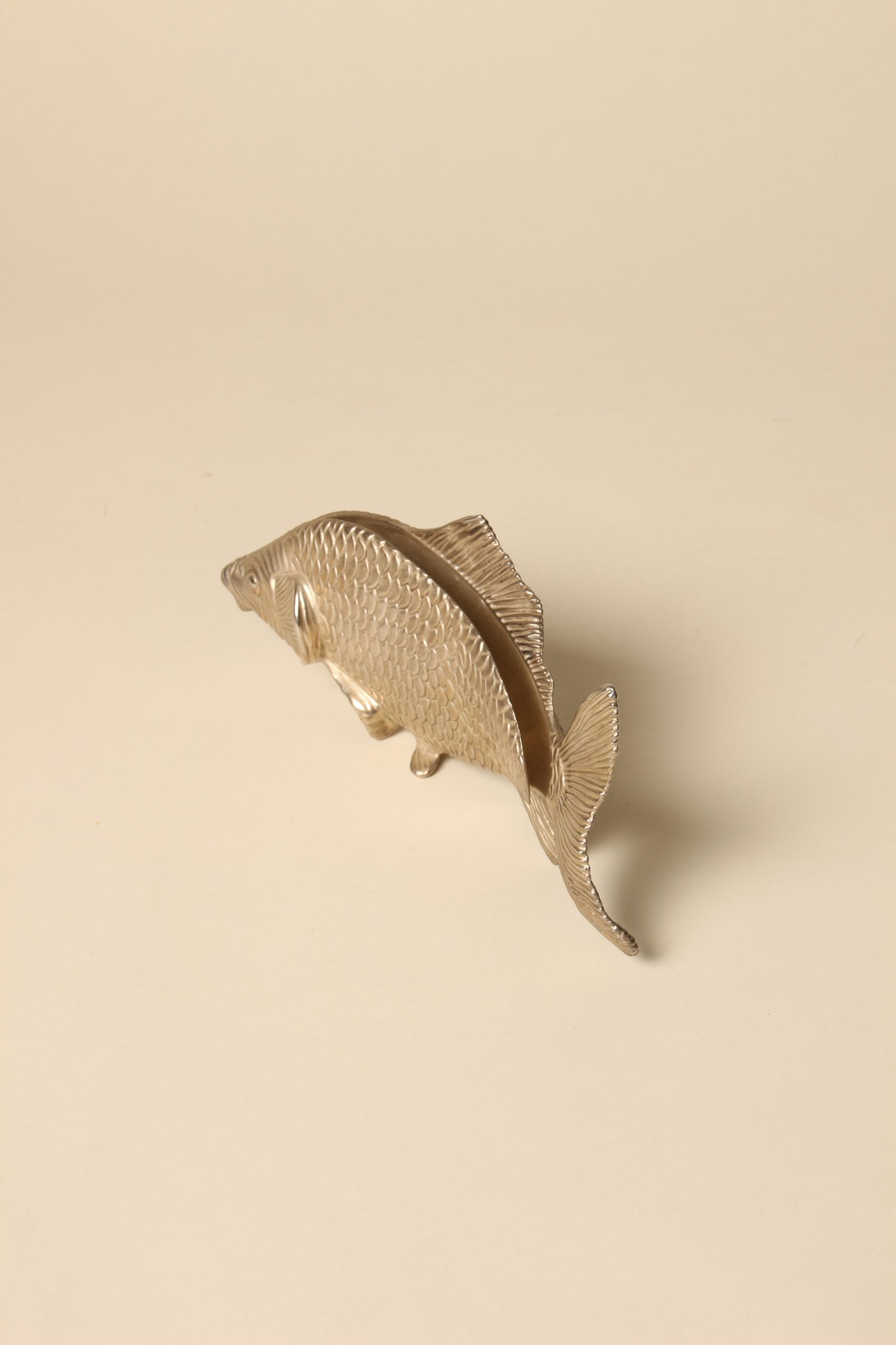 Poisson porte-serviettes en métal argenté, pouvant également servir de porte-courrier .