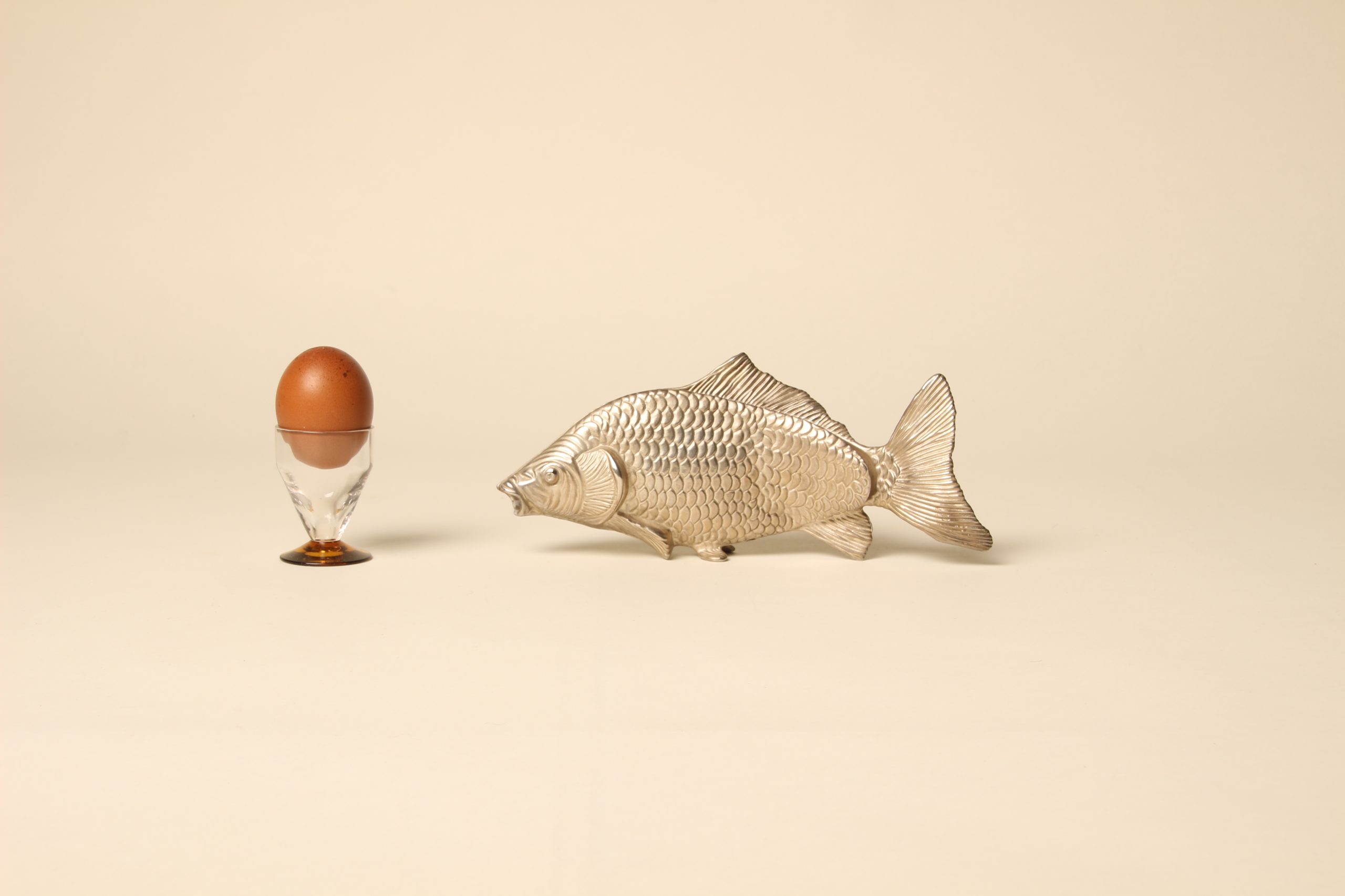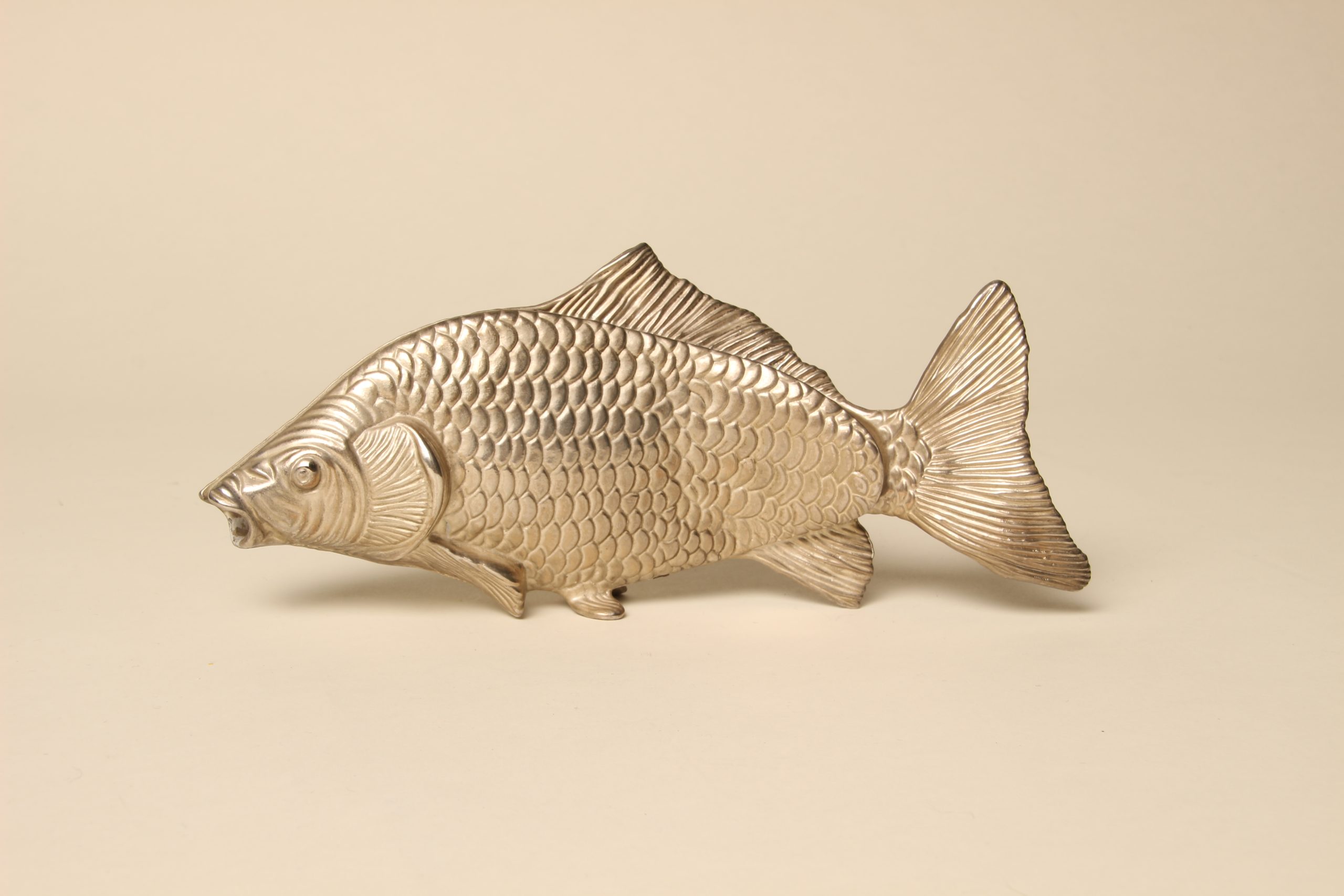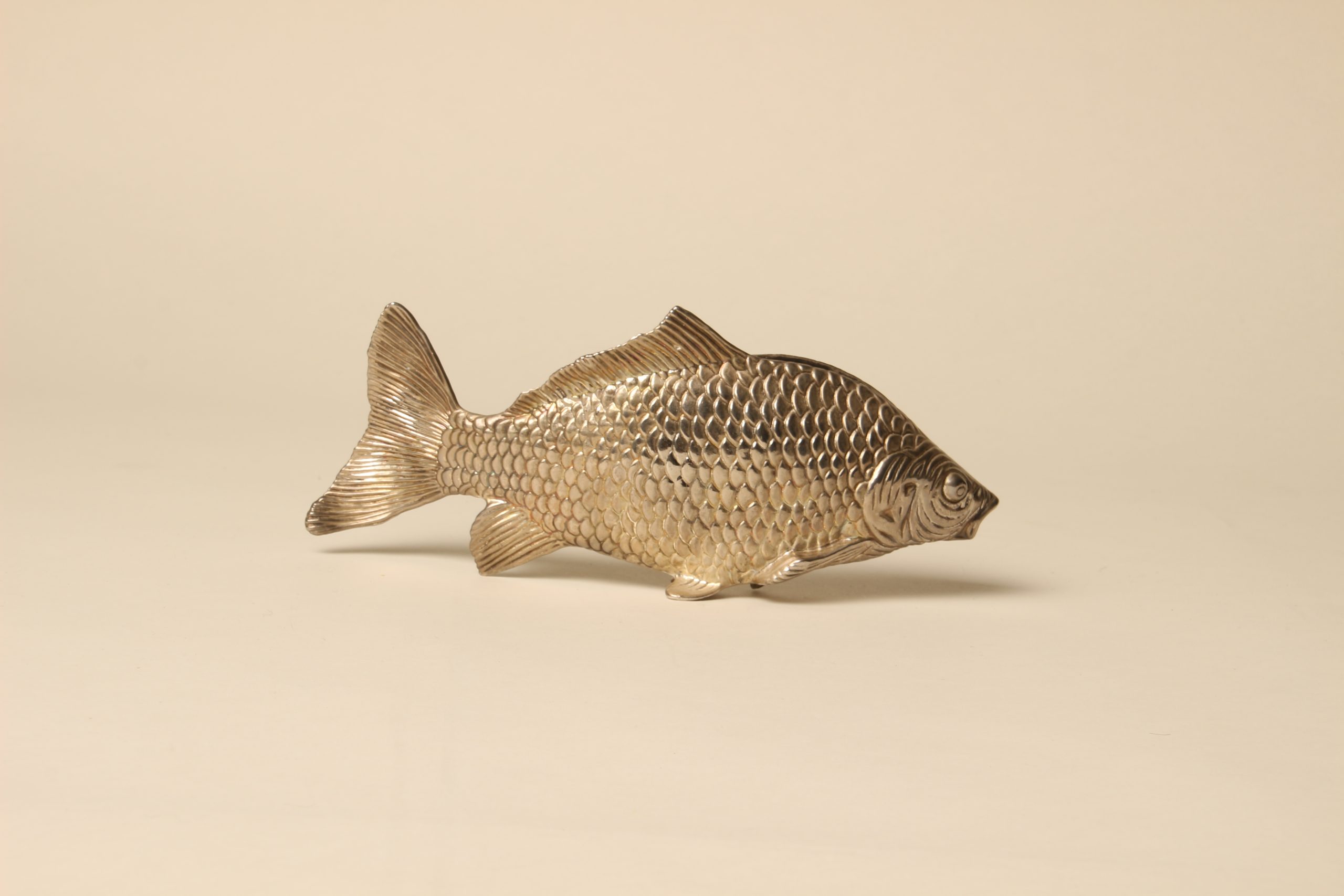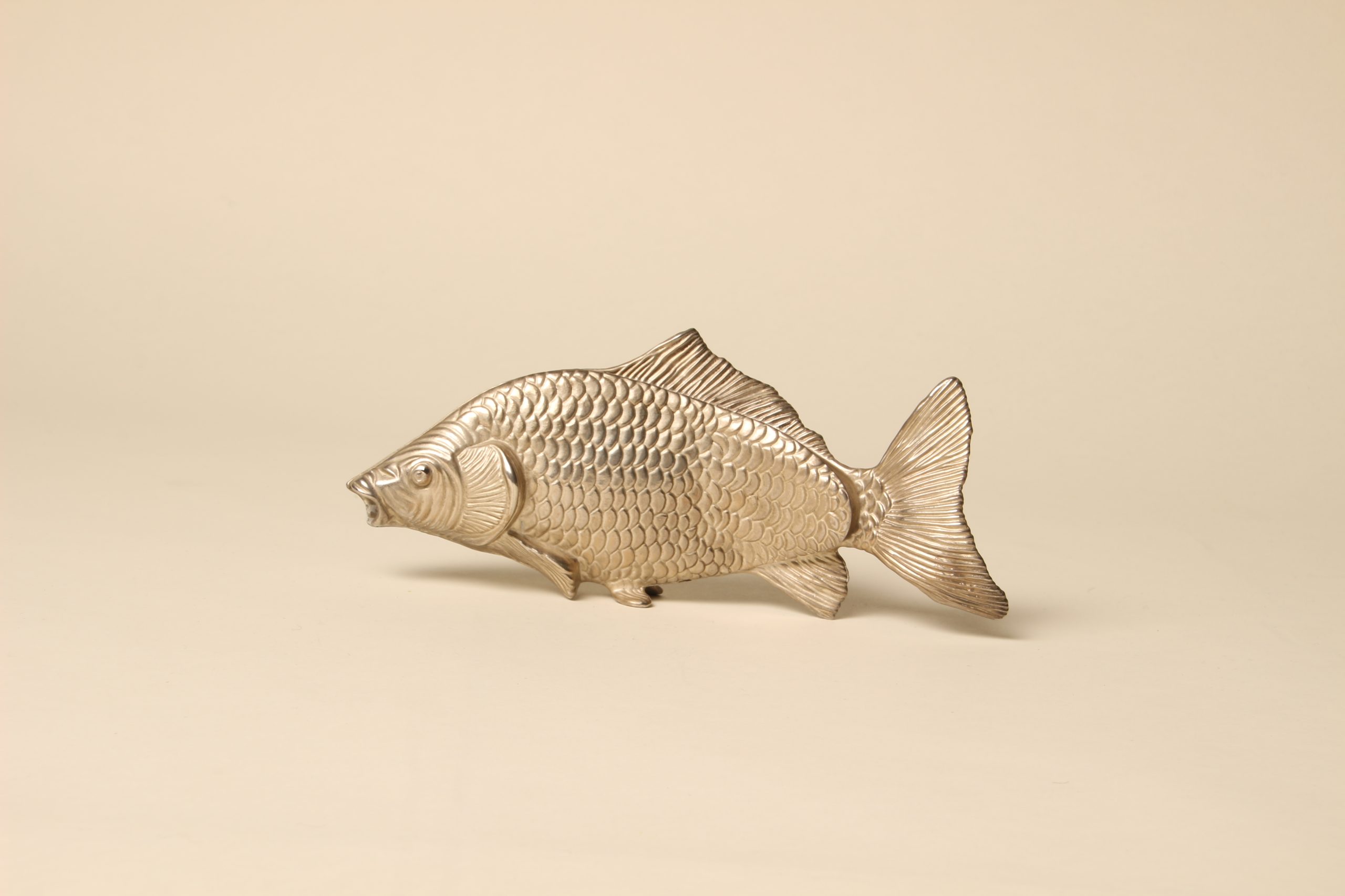 Poisson porte-serviettes en métal argenté, pouvant également servir de porte-courrier .